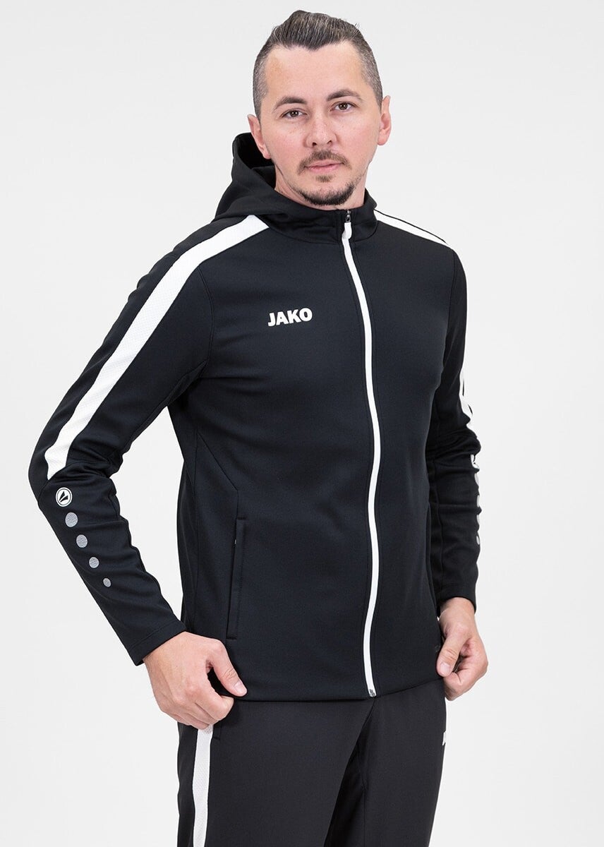 Die warme JAKO Kapuzenjacke Power mit Design-Highlights im Ärmelbereich besteht aus 100% Polyester und besitzt in der Wabenstruktur einen deutlichen Kontrasteinsatz entlang der Arm-Partie. Sie ist mit Kapuze und Reißverschlüssen an den Seitentaschen ausgestattet. Das Fleece in der Innenseite der JAKO Kapuzenjacke Power sorgt für ein angenehm weiches Tragegefühl und lässt sich auch bei kalten Jahreszeiten perfekt mit allen Artikeln der Teamline Power kombinieren.