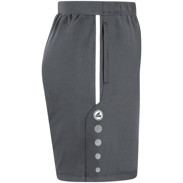 Das Highlight der JAKO Trainingsshort Allround ist der zweiteilige elastische Bund mit Kordelzug. Dieser Bund sorgt für besonders guten Halt. 90 % der Short bestehen aus recyceltem Polyester und 10 % aus Elasthan. In den Seitentaschen mit Reißverschluss kannst Du deine Wertsachen verstauen.