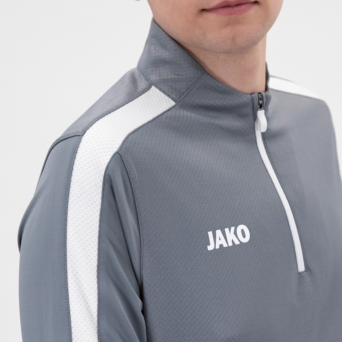 Der Kontrasteinsatz in Wabenstruktur verleiht dem JAKO Ziptop Power einen dynamischen Look. Die Ärmel bestehen aus einem hochelastischem Polyester-Elasthan-Mix und verfügen über ein Daumenloch. Das Body Material ist besonders leicht und angenehm zu tragen. Die mikrofeinen Fasern transportieren Feuchtigkeit unmittelbar an die Oberfläche des Stoffes und geben Schweiß somit keine Chance.