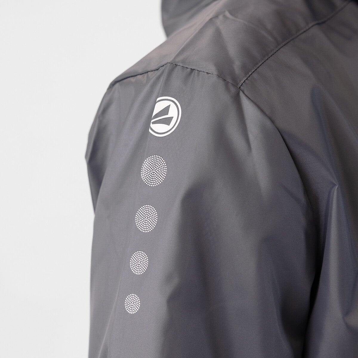 Die JAKO Allwetterjacke Team 2.0 besteht aus 100 % Polyester. Ein hochfunktionelles, wasserabweisendes Obermaterial mit PU-Beschichtung hält dich bei jedem Wetter trocken. Die Kapuze, der verlängerte Rücken und die elastische Binding schützen dich vor Wind und Regen. In den integrierten Seitentaschen mit Reißverschluss kannst Du deine Wertsachen verstauen.