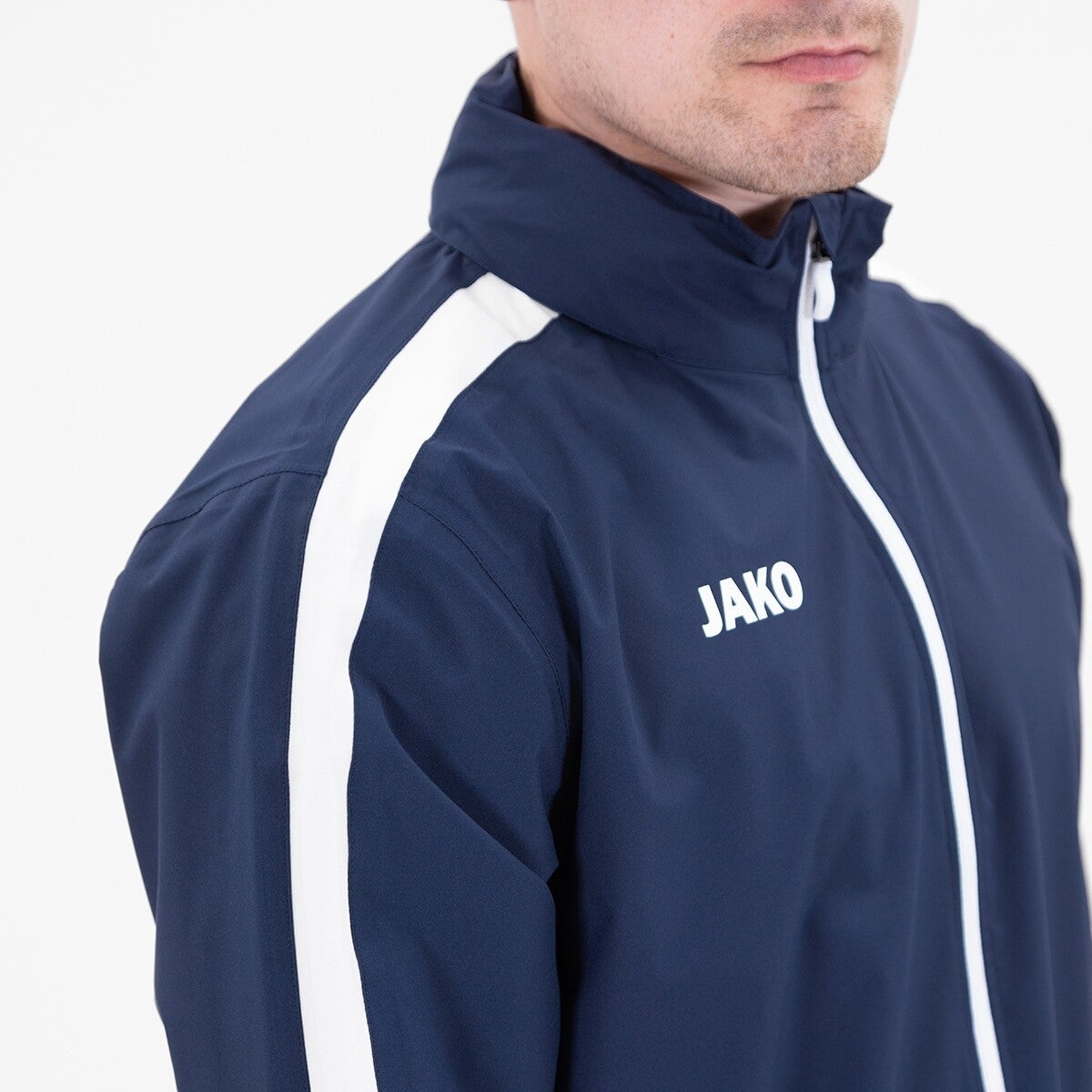 Für ein angenehmes Körperklima in der JAKO Allwetterjacke Power sorgen die wasserabweisenden Funktionsmaterialien, die gemeinsam mit getapten Hauptnähten vor unerwünschter Nässe schützen. Die Allwetterjacke Power besteht aus 100% Polyester und auch an stürmischen Tagen hält sie dank der Laminierung des Obermaterials stand.