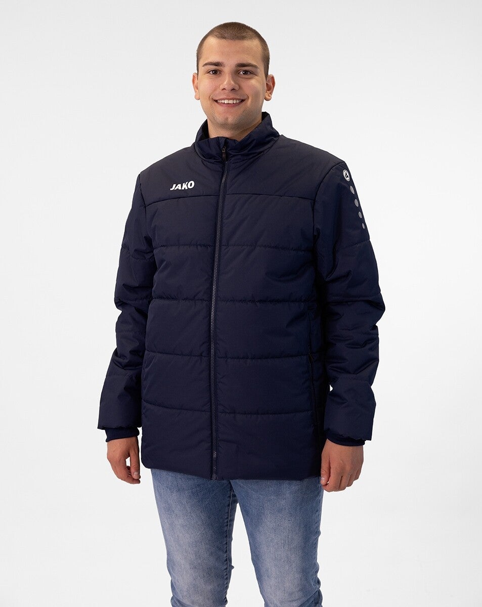 Wasserabweisendes Obermaterial (100 % Polyester) und wärmeisolierende Wattierung machen die JAKO Coachjacke Team bei kühlem Wetter zu deiner optimalen Ausstattung, wenn Du neben dem Spielfeld stehst. Integrierte Ripp-Bündchen in den Ärmeln und weiches Fleece auf der Innenseite sorgen für ein angenehmes Tragegefühl.