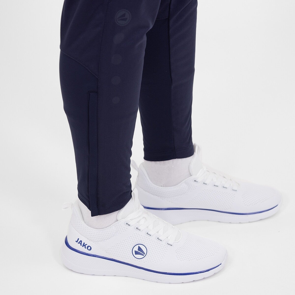 Mit zweiteiligem elastischem Bund und Kordelzug hält die JAKO Polyesterhose Power auch bei intensiven Bewegungen. Sie besitzt im Beinabschluss sowie in den Seitentaschen einen Reißverschluss. Der Wadenbereich ist mit einem elastischen Einsatz ausgestattet, um noch mehr Freiraum zu schaffen. Alle eingesetzten Materialien bestehen aus 100 % recyceltem Polyester und machen die Polyesterhose Power besonders nachhaltig. Der moderne Schnitt in Knöchellänge verleiht der Polyesterhose Power eine trendige Note.